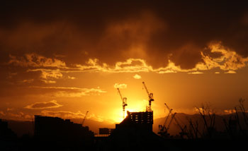 「気がつくと西の方に高層ビルが建設中なんですね。なんだか、ガメラのワンシーンみたいです。」